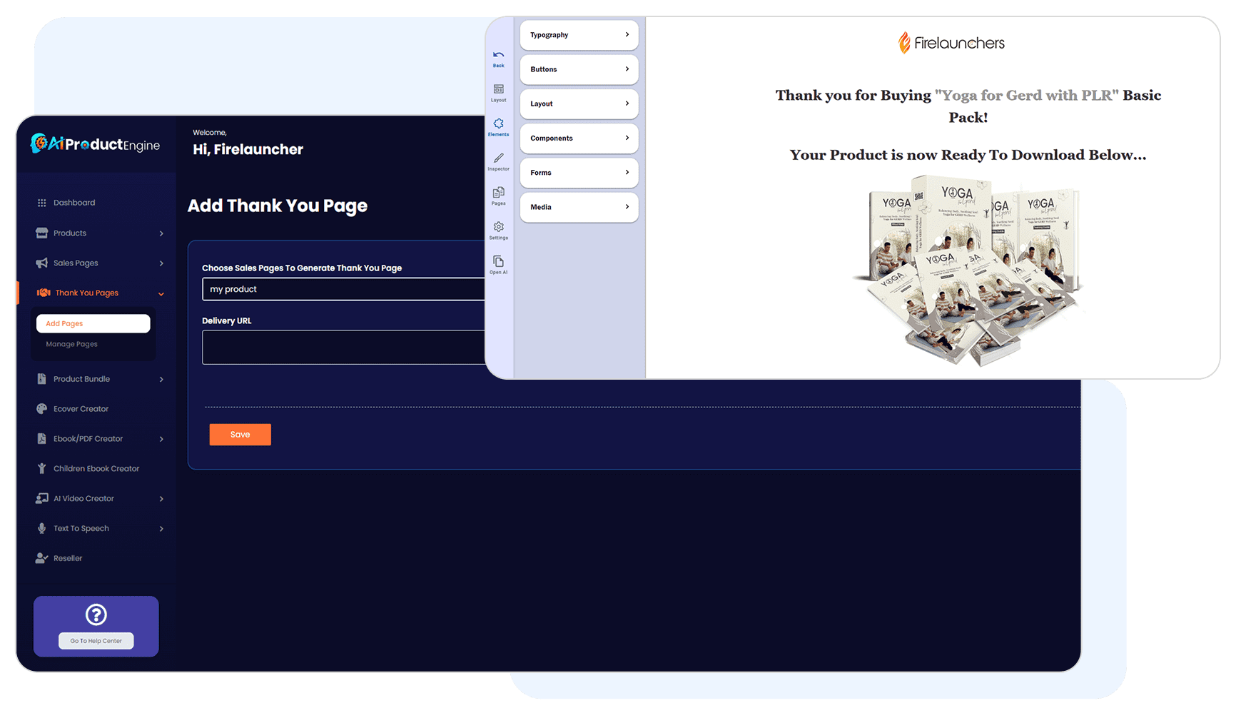 And if you have your own products, just upload them, generate the sales pages, and thank you pages and you can instantly launch them through AI Product Engine.